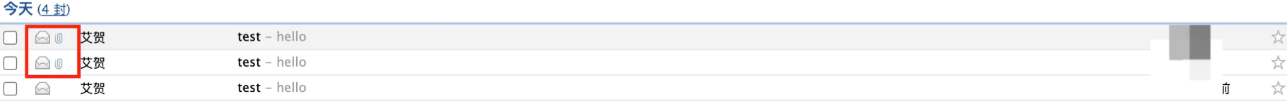 前两个邮件是带附件的,最下面一个是不带附件的;