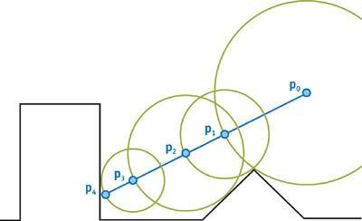 在主函数中创建一条射线,将其投喂给光线步进算法,即可获得光线到表面的最短距离