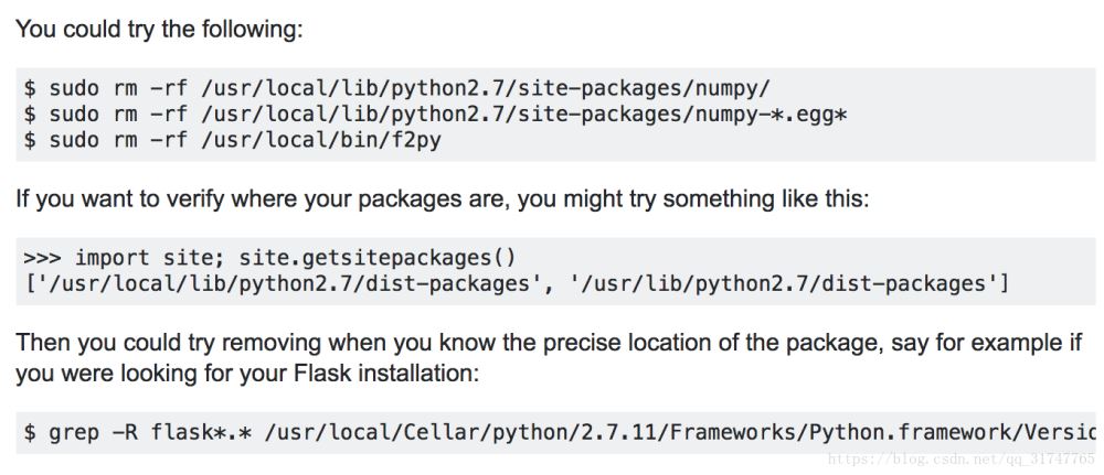 直接找到numpy的安装目录,直接通过sudo rm 去对文件夹进行删除。(如果找不到文件夹,可以通过下面截图方式,一般都在dist-packages目录下)