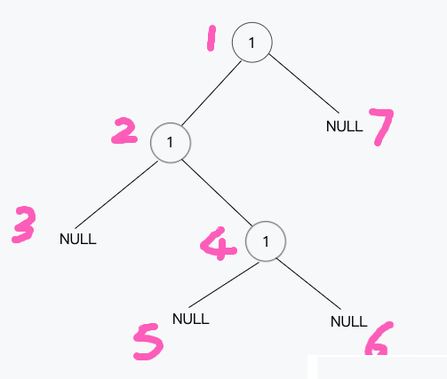 上图红色数字就是先序遍历的顺序,所以得到的字符串就是 “1,1,#,1,#,#,#”。