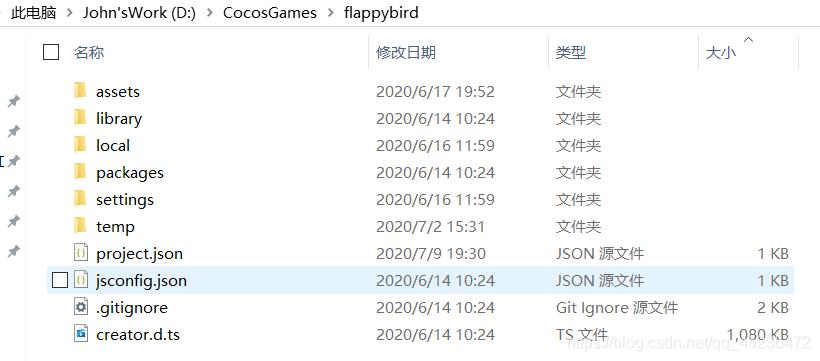 ├──settings 项目设置-------------保存项目的相关设置,如构建发布菜单里的包名、场景和平台选择