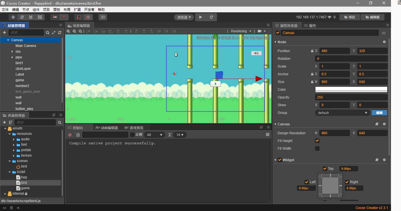 以上就是CocosCreator经典入门项目之flappybird的详细内容,更多关于CocosCreator制作flappybird的资料请关注Devmax其它相关文章!