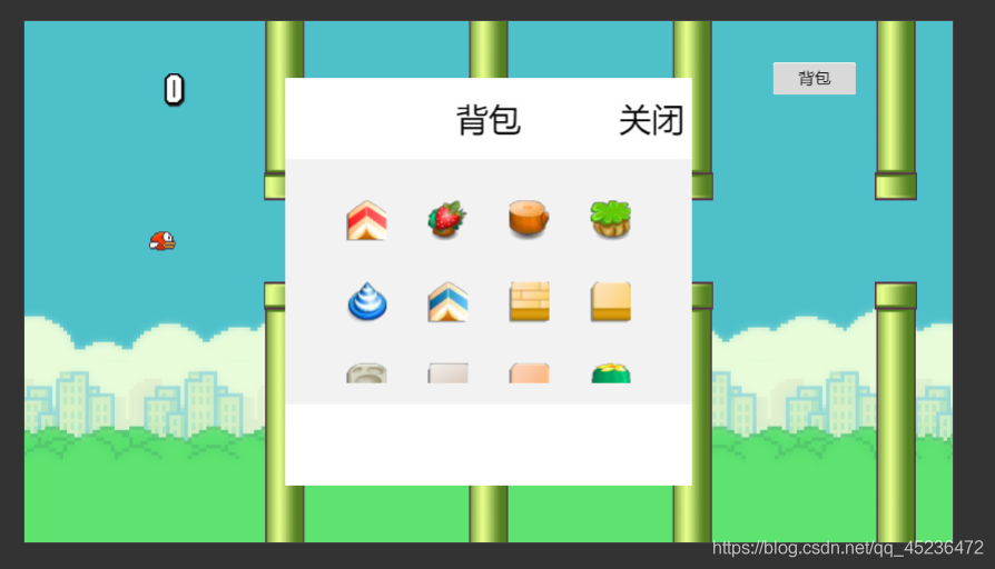 上述关于小鸟、钢管是否碰撞的检测是通过数学计算的方法实现的。不过我的项目文件中还保留了使用cocos碰撞组件的版本,具体表现为每个pipe节点、entrance节点身上的BoxCollider组件,以及bird.js。另外还有我学习制作的一个背包,主要通过预置(cc.prefab)节点实现了背包窗口以及在窗口中动态加载道具图片(sprite)。本人也在学习阶段,有问题欢迎评论区交流。笔者后续还准备分享一些其他项目!包括单机和局域网联机版本的对比项目;可能还会用到一些优化策略如:资源管理器、网络通讯管理器、信号槽等,不足之处希望各位大佬轻喷。