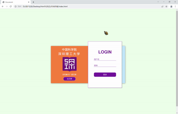 有一个这样的登录注册页面,我们要实现像文章开头那样,可以保存注册的数据,然后判断登陆页面输入的用户名与密码和本地存储的数据是否一一对应。这个案例怎么应用刚刚学到的本地存储知识点完成呢?