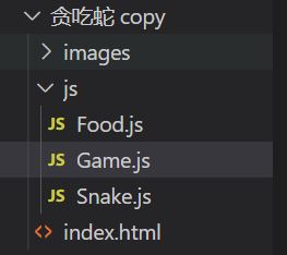 在这个地方封装了三个 js 文件,分别用来写 食物、蛇、还有我们的中介者 Game.js 文件!