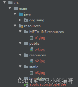 如果开发者使用IDEA创建Spring Boot 项目,就会默认创建出 classpath:/static/ 目录,静态资源一般放在这个目录即可。重启项目,访问浏览器"http://localhost:8081/p1.jpg",即可访问静态资源。