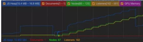 在 Retry 按钮上单击几次后,这是使用Chrome Dev Tools获取内存使用的结果: