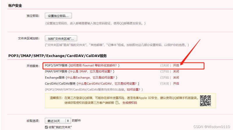 想要使用代码操作邮箱发送邮件,需要在邮箱设置中申请开通 POP3/SMTP 服务。