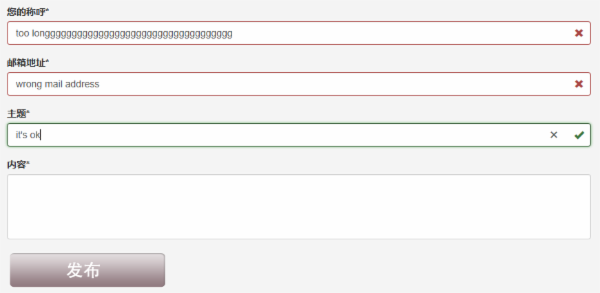 只有所有输入合法后,发布按钮才能变为可用状态