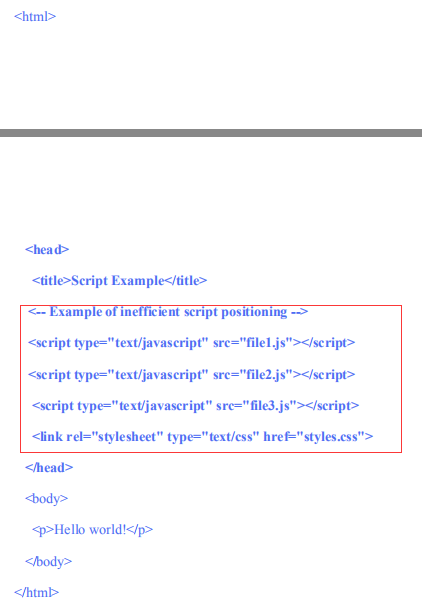 当浏览器遇到<script>标签的时候,浏览器必须先话时间下载外链的文件然后并执行,在这过程中,页面渲染和用户交互是完全被阻塞的。