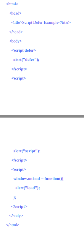 在不支持defer属性的浏览器弹出的顺序是:defer,script,load
