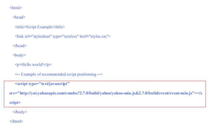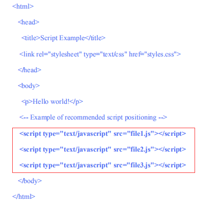 2.合并脚本。页面中的<script>标签越少,加载也就越快,响应也更快。无论外链文件还是内嵌脚本都是如此