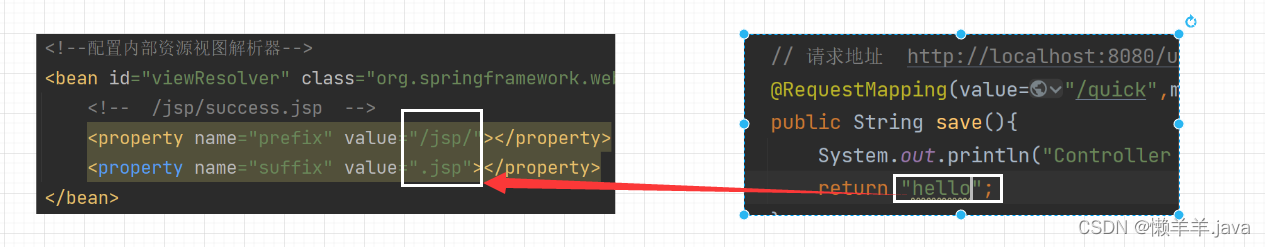 1.直接返回字符串,本质是在配置文件里写好头和尾,在具体的代码中返回文件名后跳转