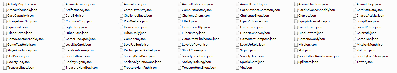 将.bin改成.zip,进行解压,得到游戏的所有json配置文件