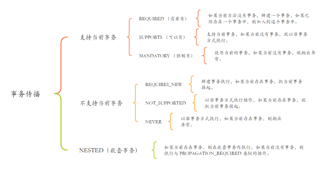 以上 7 种传播机制,可根据“是否支持当前事务”的维度分为以下 3 类: