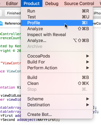 可以选择「Product」下的「Profile」来打开「Instruments」工具集。