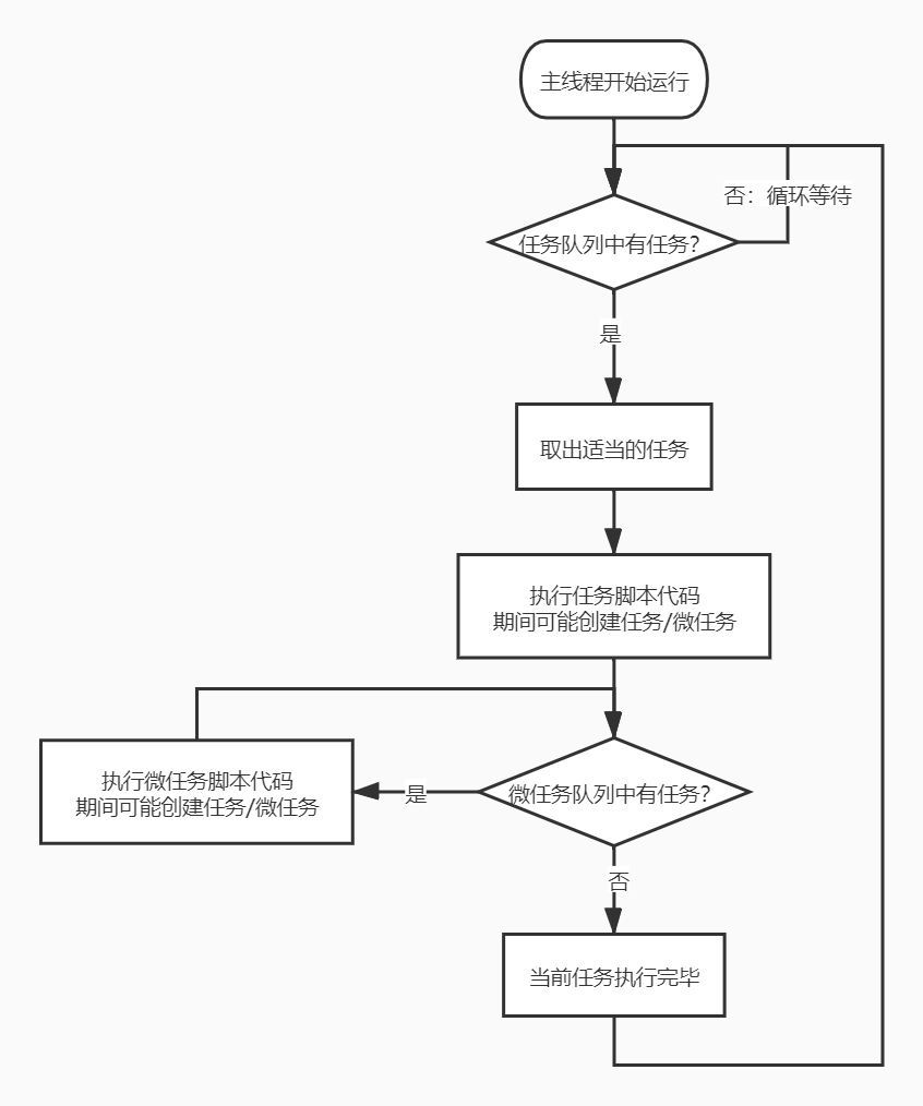 - 如果有微任务,顺序执行,期间可能还会创建新的任务和微任务