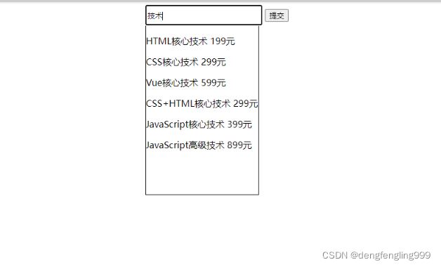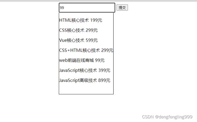 'CSS HTML核心技术 299元', 'web前端在线商城 99元', 'JavaScript核心技术 399元', 'JavaScript高级技术 899元'];