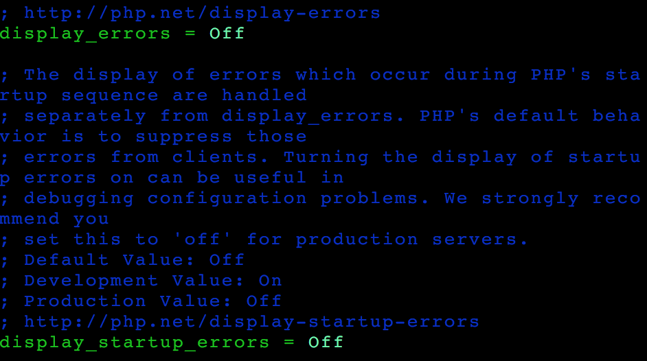 error_log = /var/log/php_error.log display_errors = Off error_reporting = E_ALL log_errors = On