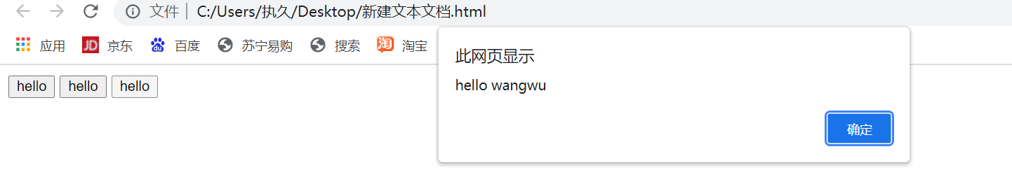 <input type="button" value="hello" onclick="alert('hello world')"/>6、设置多个alert可以一直弹窗