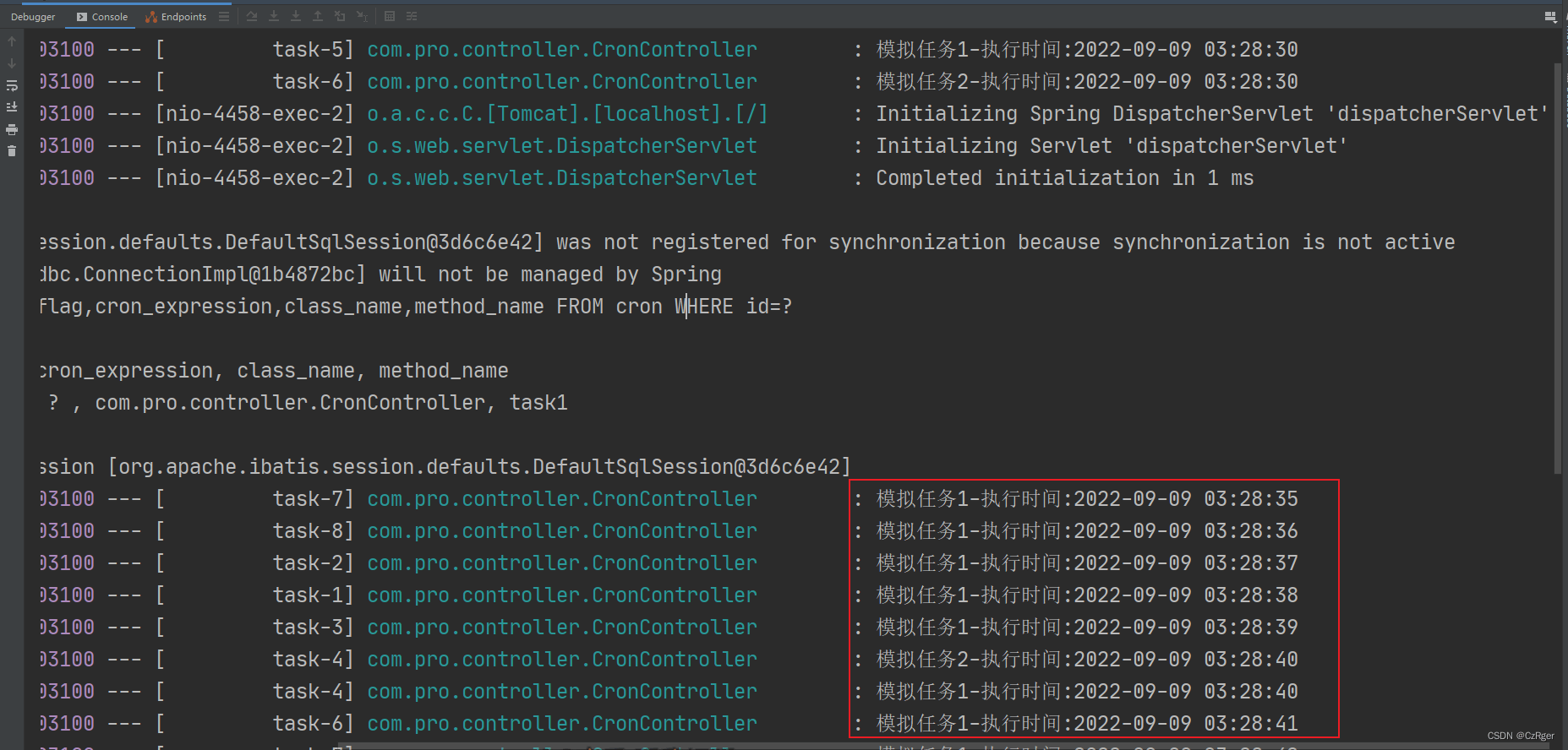 重写SchedulingConfigurer的configureTasks方法,可以在项目启动时自动加载状态为启用(cron_flag为1)定时任务列表