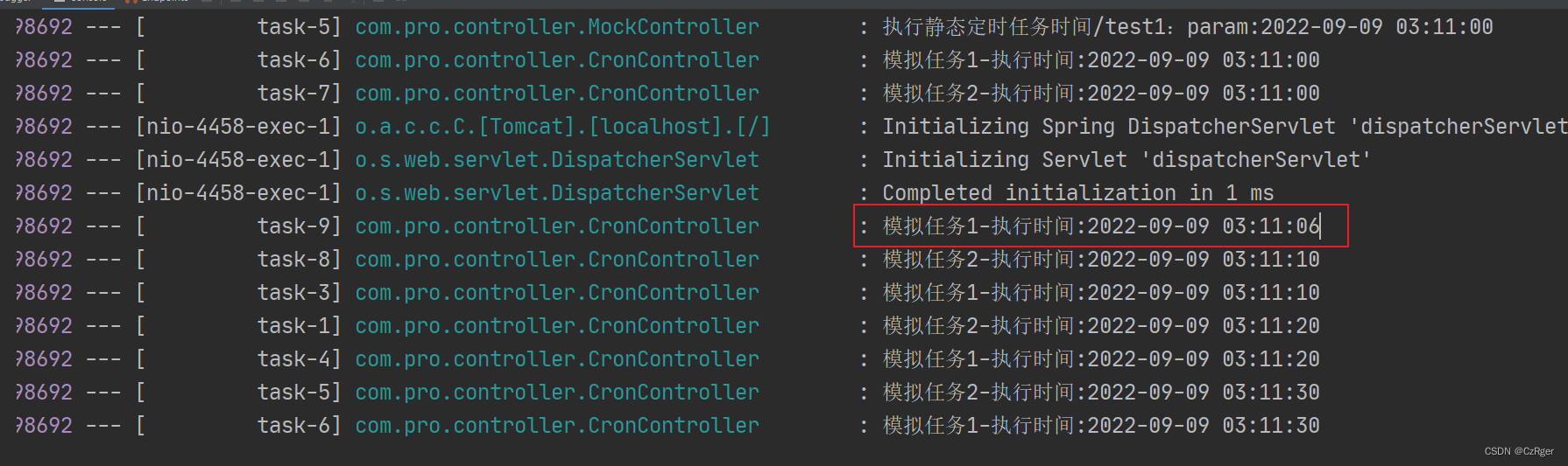 从调用结果中可以看到,task1在06秒的时候单独执行了一次,并且没有影响后续执行