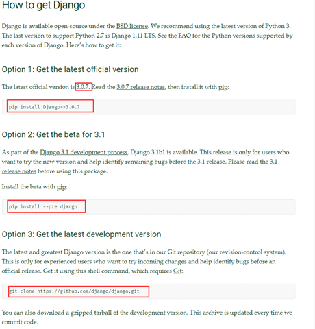 Django遵守BSD版权,初次发布于2005年7月, 并于2008年9月发布了第一个正式版本1.0 。