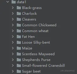 data ├─Black-grass ├─Charlock ├─Cleavers ├─Common Chickweed ├─Common wheat ├─Fat Hen ├─Loose Silky-bent ├─Maize ├─Scentless Mayweed ├─Shepherds Purse ├─Small-flowered Cranesbill └─Sugar beet