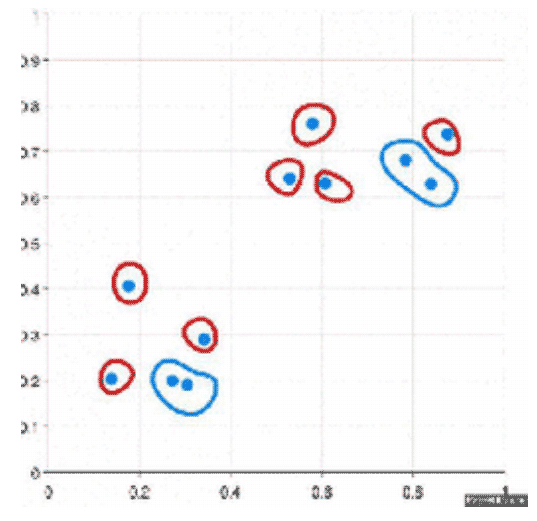 - 取最近的两个簇并使它们成为一个簇→形成N-2个簇。
