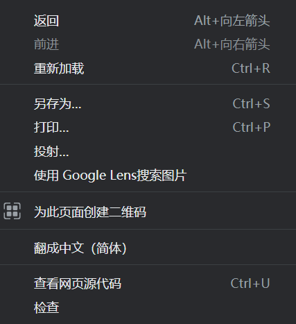 在 Chrome 中打开一个页面之后,我们可以在页面中单击鼠标右键,然后在菜单中中选择**“检查”**,这样就可以打开开发者工具了。