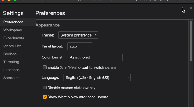 点击开发者工具右上角的 ⚙,然后选择 Language 为 Chinese,也就是我们的中文,接着重新载入开发者工具即可。
