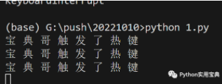 keyboard.add_hotkey('ctrl shift a', print, args=('宝典哥触发了热键'))