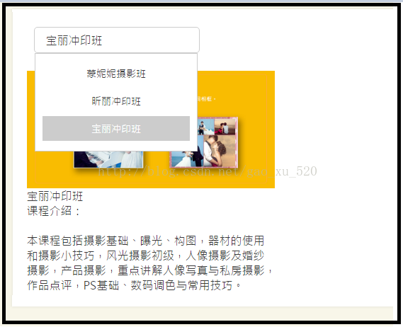 下面一段代码给大家分享基于jquery实现的模拟下拉框选择对应菜单的内容,具体代码如下所示:
