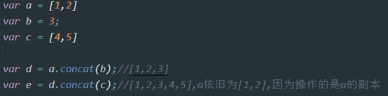 concat()方法:如果没有参数则返回当前数组的副本,如果参数是一个数组,则将参数数组中的每一项都添加到当前数组副本的末尾,然后返回该副本,如果参数不是数组,则将参数添加到当前数组副本的末尾并返回该副本