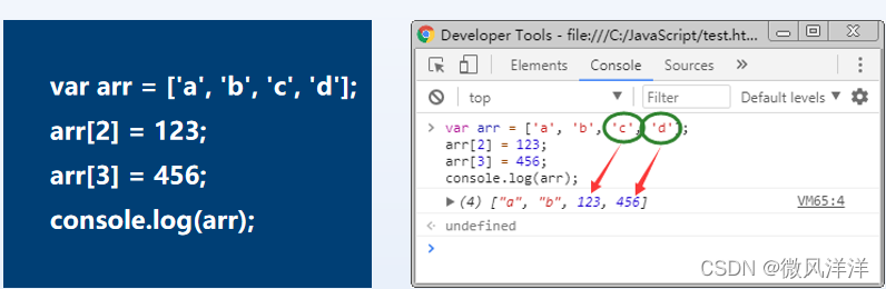 - 允许下标不按照数字顺序连续添加,未设置具体值的元素,会以空存储位置的形式存在。