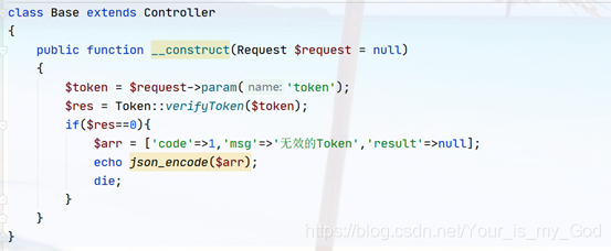 $token = $request->param( name: "token " );$res = Token : :verifyToken($token) ;