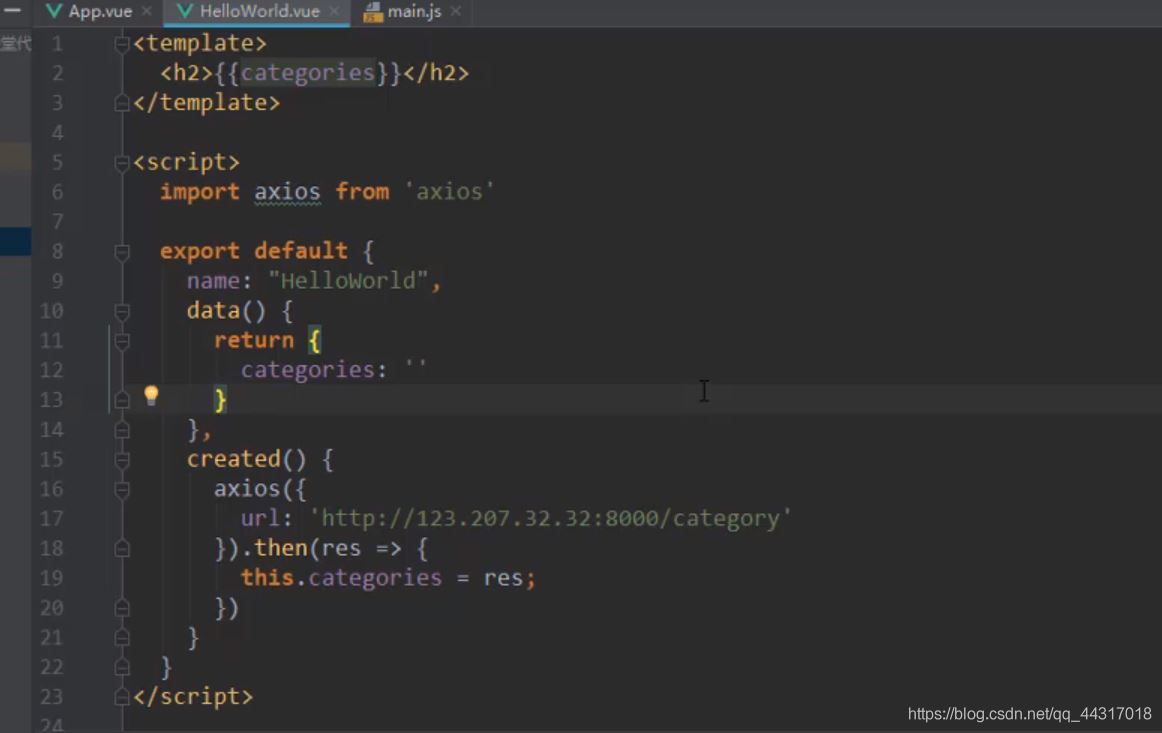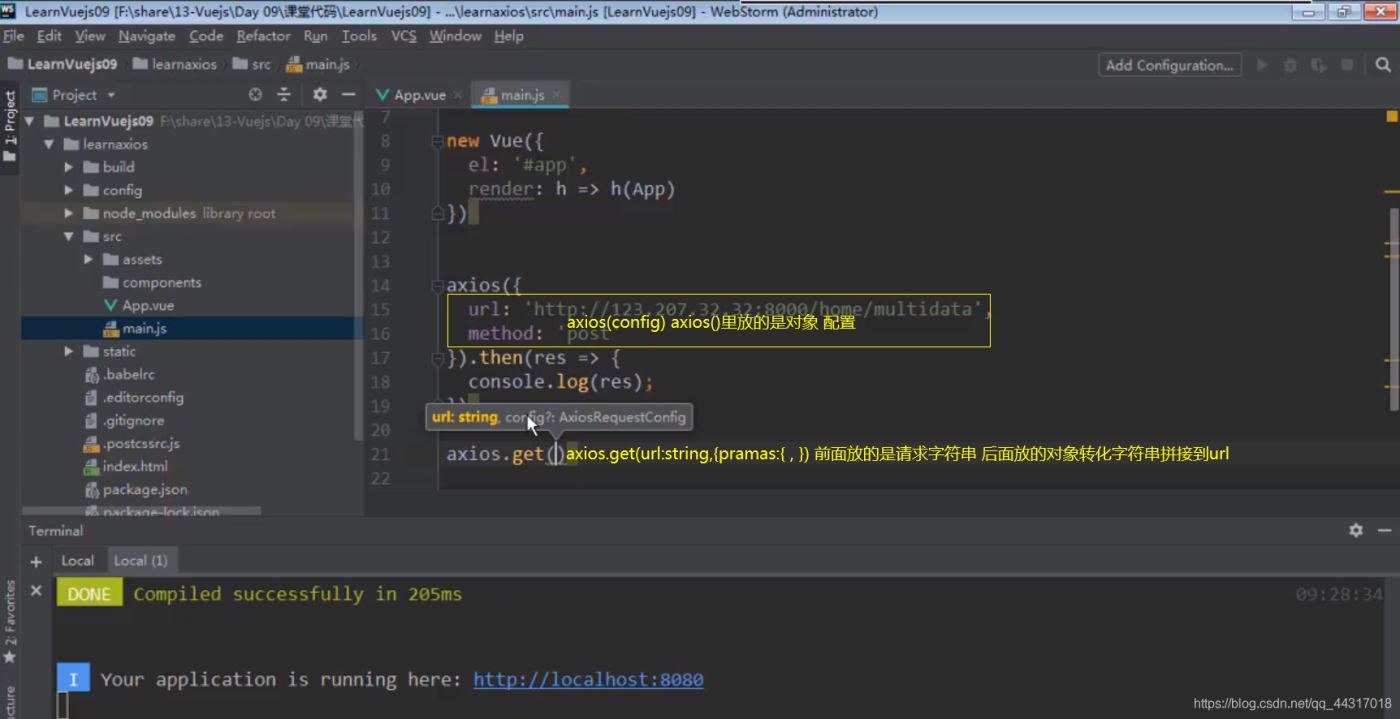 //全局main.js中已引入axios, 设置baseURL,故写this.axios ,this.axios({url:'xxx' ,medthod:get} ) medthod可以写到前面去 ,全局中baseURL设置了基础路径, url中写基础路径后面的请求部分即可