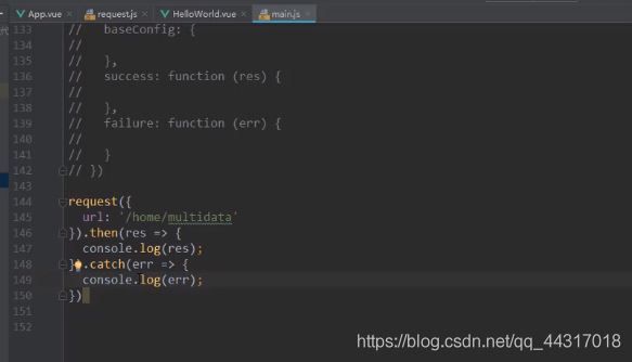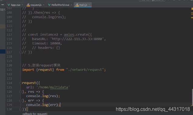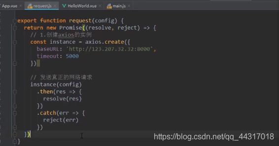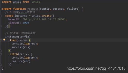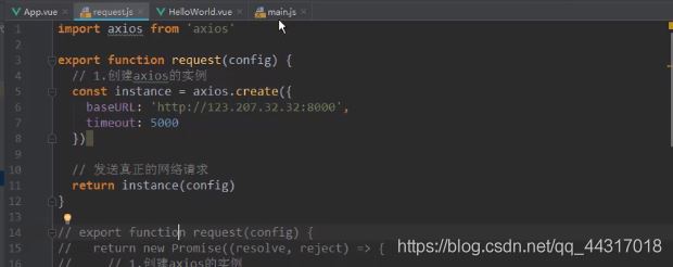 (3)index.js文件 接口函数的封装在这里配置,下面以三个请求接口不同的请求方式和数据格式为例。来进行封装示范: