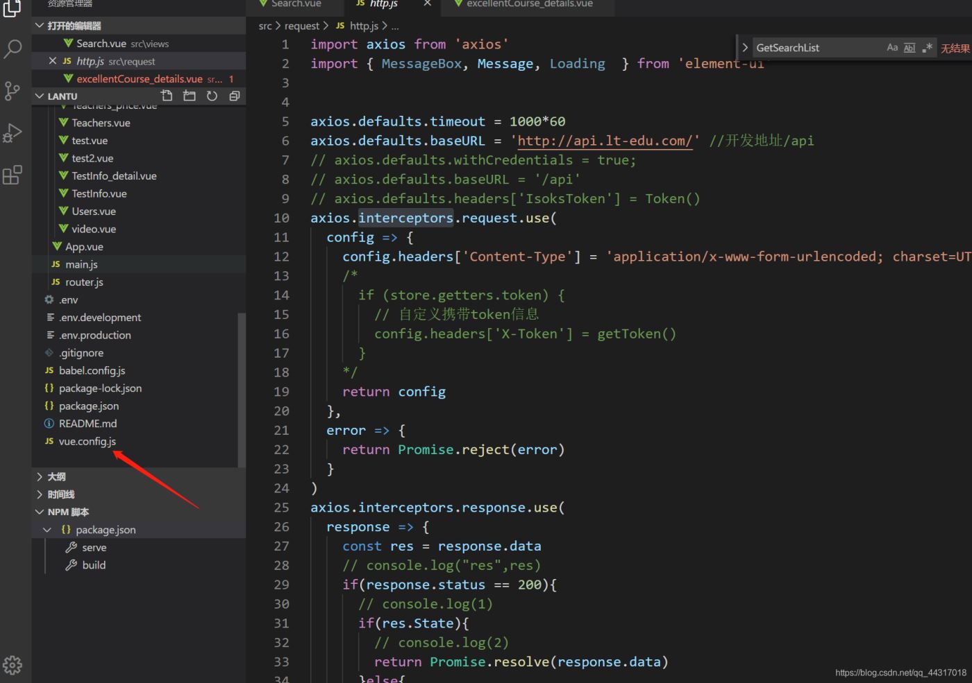 └── index1.js注:为了api文件夹的简洁以及接口管理方便,对于多域名代理的,建议将对应的axios.js 和 index.js 两个js文件合并成一个js文件,怎么合并就不讲了,懂js的都会,不会的就反思一下,补充下基础知识。