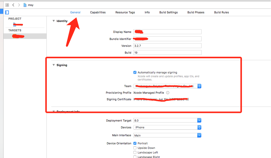 用Xcode8打开工程后,比较明显的就是下图了,这个是苹果的新特性,可以帮助我们自动管理证书。建议大家勾选这个Automatically manage signing(Ps.但是在beat2版本我用的时候,完全不可以,GM版本竟然神奇的又好了。)