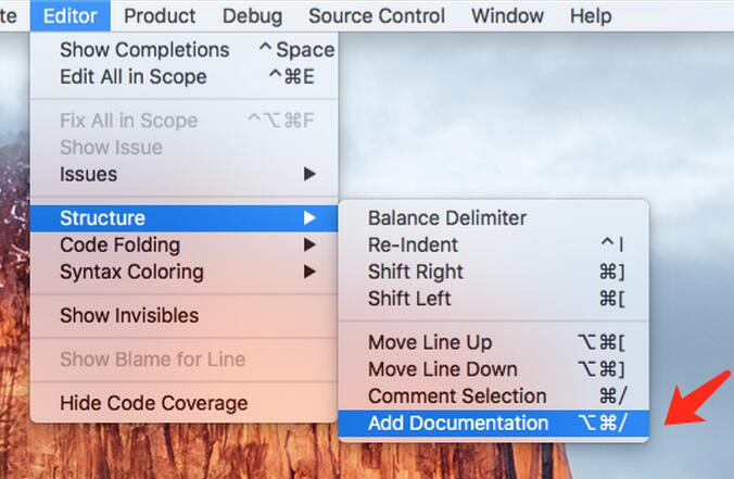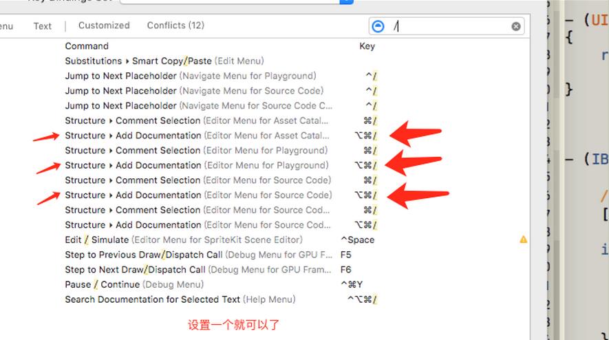 注意:Xcode8内置了开启注释的功能,位置在这里
