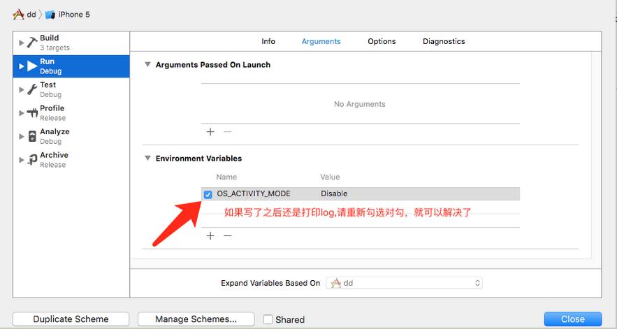 Xcode8里边 Edit Scheme-> Run -> Arguments, 在Environment Variables里边添加