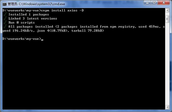 在安装的时候,一定要切换进入咱们的项目根目录,再运行安装命令,然后如提示以上信息,则表示安装完成。