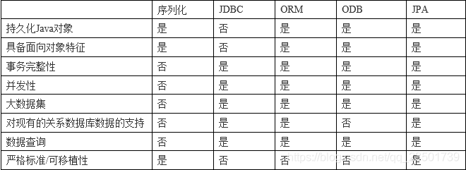 与其他持久化技术相比,JPA有很大的技术优势。表列出了JPA与其他持久化技术的比较。