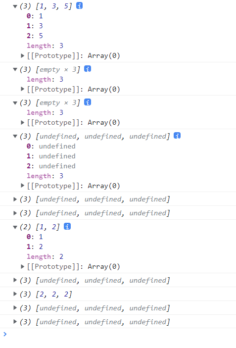 Array(undefined, undefined) // 而空数组中的每一个元素的值都为undefined