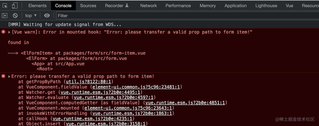分享今天同事问的一个问题, 下面这段代码会报错,先看代码:重点是el-form-item组件的prop属性