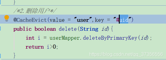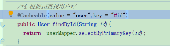 这里的value 是该缓存的名称,可以随意写,而key要严格按照查询条件来写,比如这里是查询条件id.