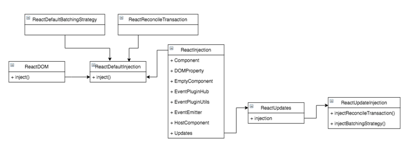 可以看到 ReactUpdates 依赖的ReactReconcileTransaction和batchingStrategy就是通过这 2 个方法注入进去的。