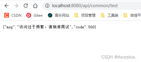 可以看出,前面两次都成功返回了请求结果,第三次超出了接口限流次数,返回了自定义异常信息。