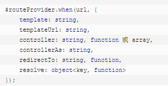 $routeProvider 为我们提供了 when(path,object) & otherwise(object) 函数按顺序定义所有路由,函数包含两个参数: